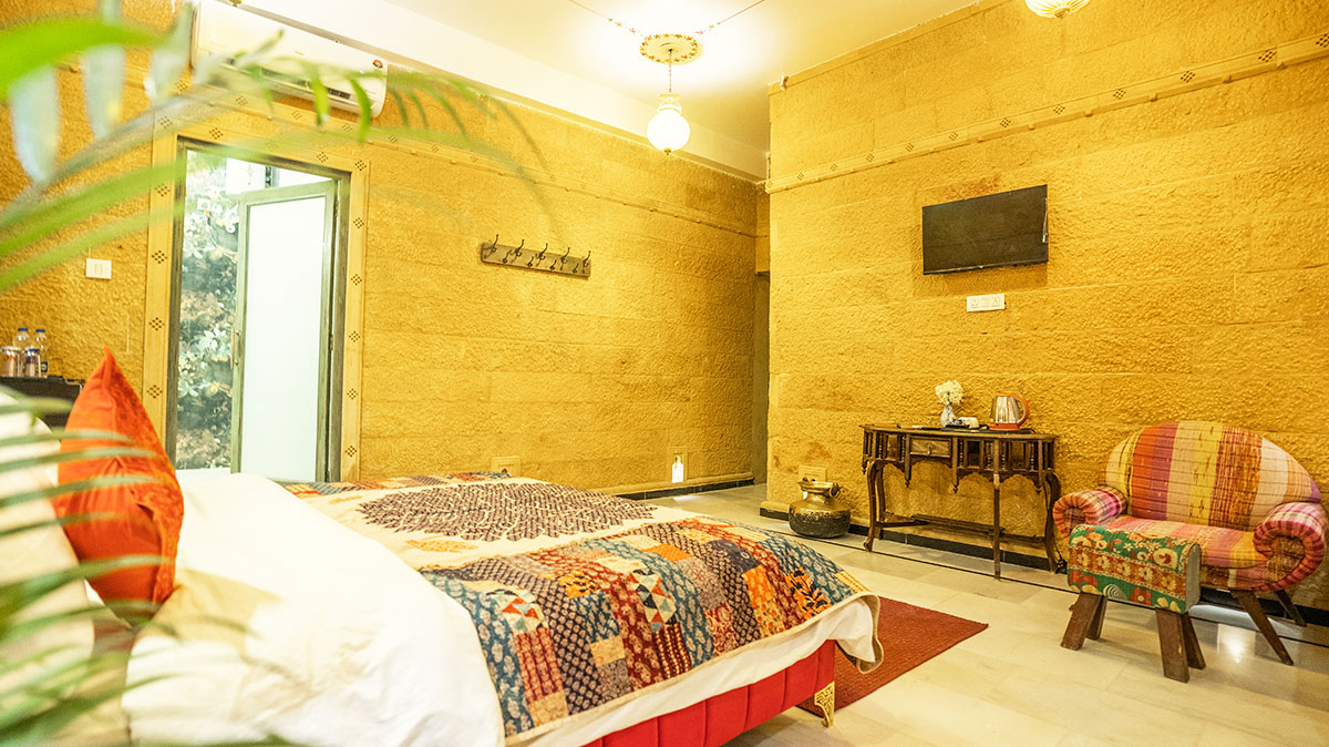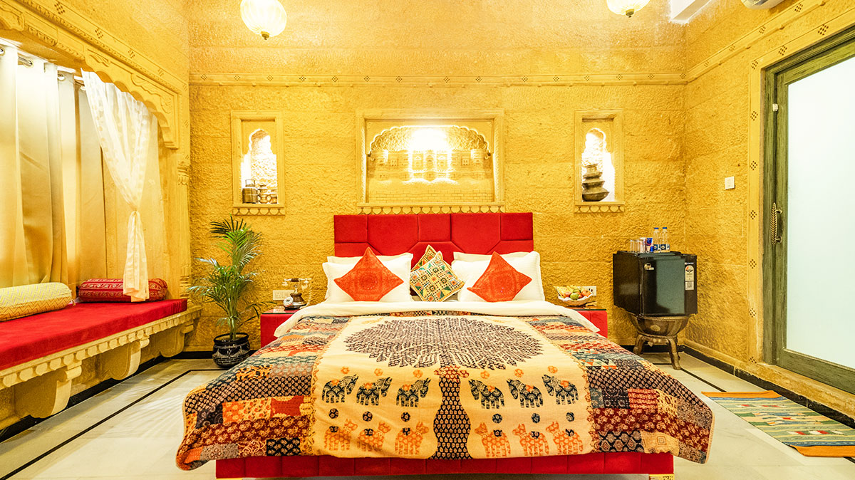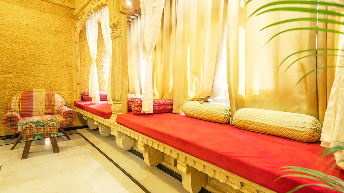 • Golden-toned interiors with traditional Rajasthani elegance