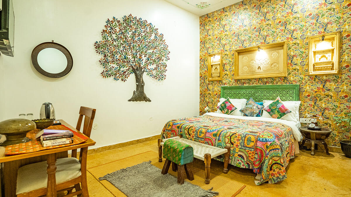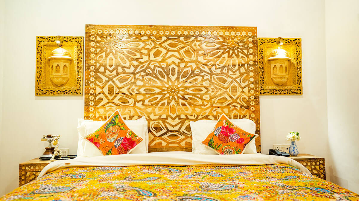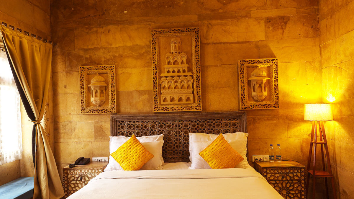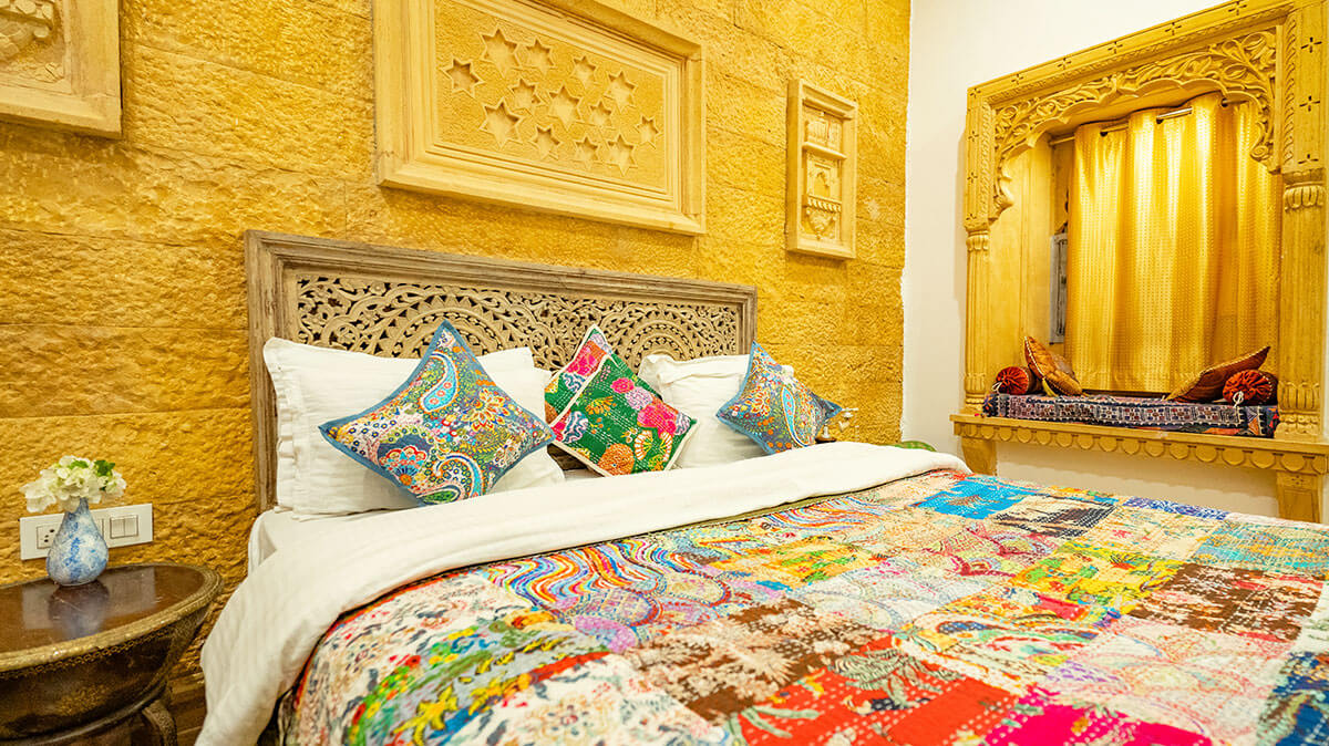 Every room at Garh Meera tells its own story, designed with locally inspired decor, handcrafted details, and peaceful energy to suit every mood. From romantic retreats to cozy hideaways, our accommodations reflect the artistic beauty and quiet charm of Jaisalmer.