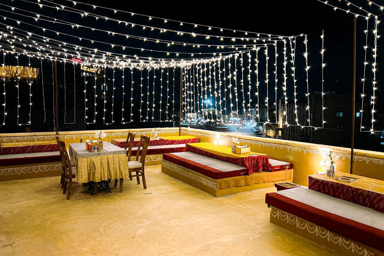 Our rooftop restaurant offers more than just meals — it offers moments. Dine under the open sky with stunning views of the Jaisalmer Fort, while enjoying authentic Rajasthani and Indian cuisine. The warm ambiance, candle-lit tables, and soft folk music create an unforgettable dining experience for couples, families, and travelers alike.